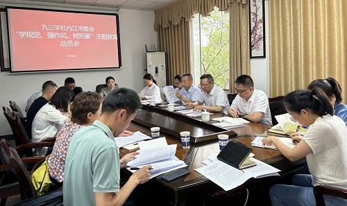 5月30日,九三學(xué)社內(nèi)江市委會(huì)召開(kāi)“學(xué)規(guī)定、強(qiáng)作風(fēng)、樹(shù)形象”主題教育動(dòng)員會(huì)。市政協(xié)副主席、九三學(xué)社內(nèi)江市委會(huì)主委段輝國(guó)出席會(huì)議并講話。九三學(xué)社內(nèi)江市委會(huì)副主委林海亮、鄒蘭斌出席會(huì)議,各基層組織主委、專委會(huì)主任參加會(huì)議。