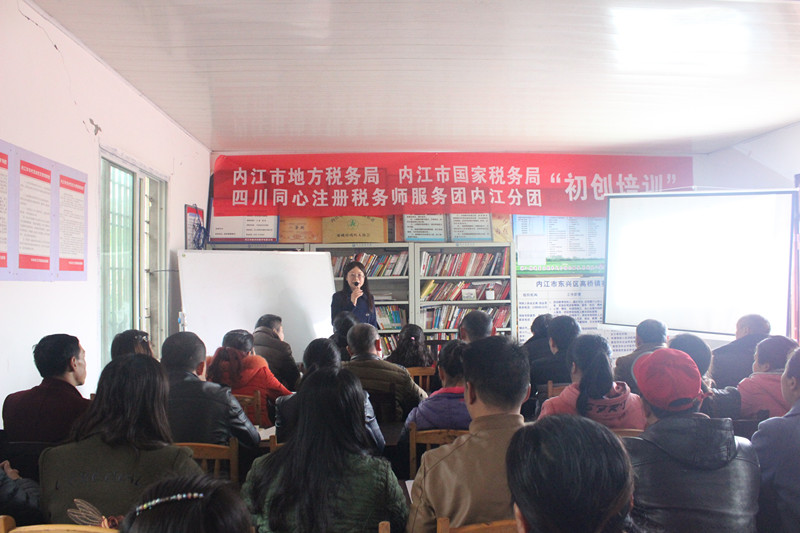 2017年3月22日上午,九三學(xué)社內(nèi)江市委三支社副主委、四川同心·注冊(cè)稅務(wù)師服務(wù)團(tuán)內(nèi)江分團(tuán)長(zhǎng)熊偉攜手內(nèi)江市國(guó)稅局、內(nèi)江市地稅局到內(nèi)江市東興區(qū)高橋鎮(zhèn)賽峨村為想自主創(chuàng)業(yè)的村民們講授初創(chuàng)企業(yè)涉稅風(fēng)險(xiǎn)提示。聽課的人員約五、六十人,都是本村的村民,中間有五十歲的大媽,也有二十多歲的小伙,講師熊偉分享了自己的創(chuàng)業(yè)經(jīng)歷,深入淺出的講解了創(chuàng)業(yè)初的涉稅風(fēng)險(xiǎn)、經(jīng)營(yíng)中的涉稅風(fēng)險(xiǎn)及注銷清算時(shí)的注意事項(xiàng),并穿插著講解了稅收征管法及小微企業(yè)優(yōu)惠政策。看似沒有文化的村民們聽得專注而認(rèn)真,課后還積極提問及互動(dòng)交流。課后還為他們散發(fā)了各種稅法宣傳資料。