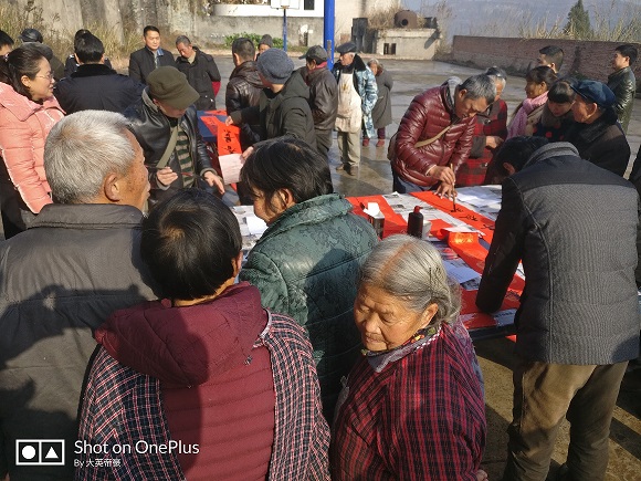 在2018年農(nóng)歷春節(jié)即將到來(lái)之際,1月16日上午,九三學(xué)社資中委員會(huì)組織社員開(kāi)展寫(xiě)春聯(lián)送文化下鄉(xiāng)活動(dòng),內(nèi)江市政協(xié)副主席柳慧,資中縣政協(xié)副主席、九三學(xué)社資中委員會(huì)主委張麗及省市著名書(shū)法家丁常輝、謝中明等應(yīng)邀到板栗埡鎮(zhèn)干坡村參加活動(dòng)。