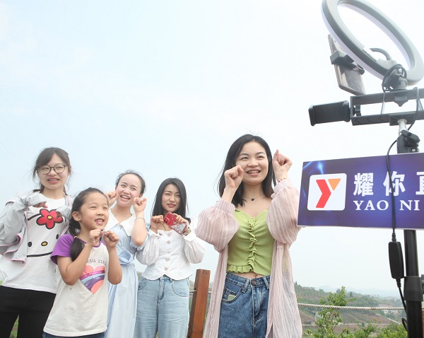 “夏滿蜜桃來一單,我們大家都喜歡;夏滿蜜桃訂三斤,整個夏天都清新;蜜桃分享你我他,農(nóng)民伯伯笑開花……”5月16日上午,來自內(nèi)江市九三學社的社員們正在東興區(qū)郭北鎮(zhèn)九根樹村的夏滿蜜桃種植基地為滯銷的蜜桃線上帶貨。