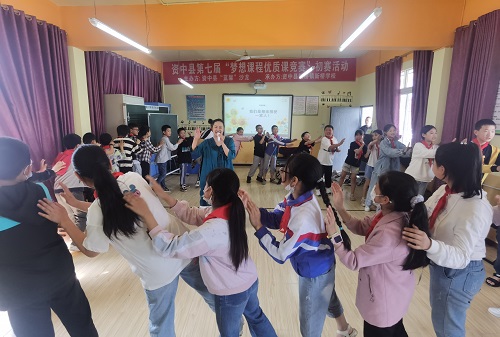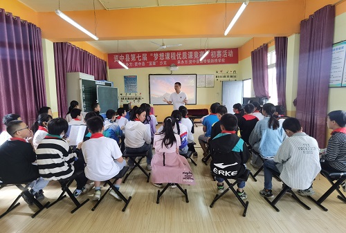 內(nèi)江市音樂(lè)家協(xié)會(huì)副秘書(shū)長(zhǎng)、資中一中一級(jí)教師力國(guó)軍對(duì)孩子們進(jìn)行基礎(chǔ)樂(lè)理知識(shí)培訓(xùn),并教唱原創(chuàng)歌曲《船城夢(mèng)航》。