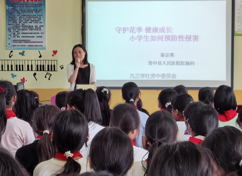 資中縣人民醫(yī)院副主任醫(yī)師秦宗英對(duì)四、五、六年級(jí)女生進(jìn)行了“防性侵”教育。