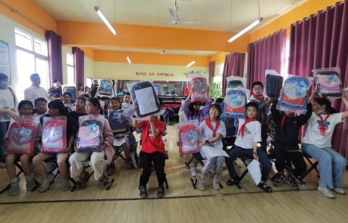 全體同志為參與活動(dòng)的留守兒童發(fā)放了學(xué)習(xí)用具和書(shū)包。