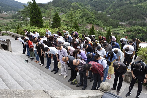 12日,活動(dòng)組一行來(lái)到赤水紅軍烈士陵園,整座陵園寧?kù)o肅穆。大家拾級(jí)而上,在白色的紀(jì)念碑后面是325座紅軍烈士的墓碑,為弘揚(yáng)四渡赤水精神,子孫后代緬懷紅軍先烈,赤水人民敬移境內(nèi)325位紅軍烈士忠骨安葬于赤水河畔杉樹(shù)壩,敬遷全市26個(gè)烈士紀(jì)念設(shè)施于此,并將原建的“赤水革命烈士陵園”改建為“四渡赤水紅軍烈士陵園”,以供后人憑吊瞻仰。面對(duì)這些墓碑,社員們肅然起敬,再次默哀。站在烈士陵園前,大家深切感受到中國(guó)革命之艱辛和艱難!先烈們無(wú)私的奉獻(xiàn),讓我們對(duì)今天美好生活的來(lái)之不易有更加深刻的體會(huì),也更加珍惜身邊的一切。