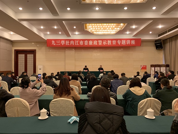 為進一步引導(dǎo)社員干部增強法制觀念,提高廉潔自律意識,筑牢拒腐防變的思想防線。10月31日上午,九三學(xué)社內(nèi)江市委邀請市紀(jì)委常務(wù)副書記、市監(jiān)委副主任劉曉宇為社員干部作廉政警示教育專題講座。