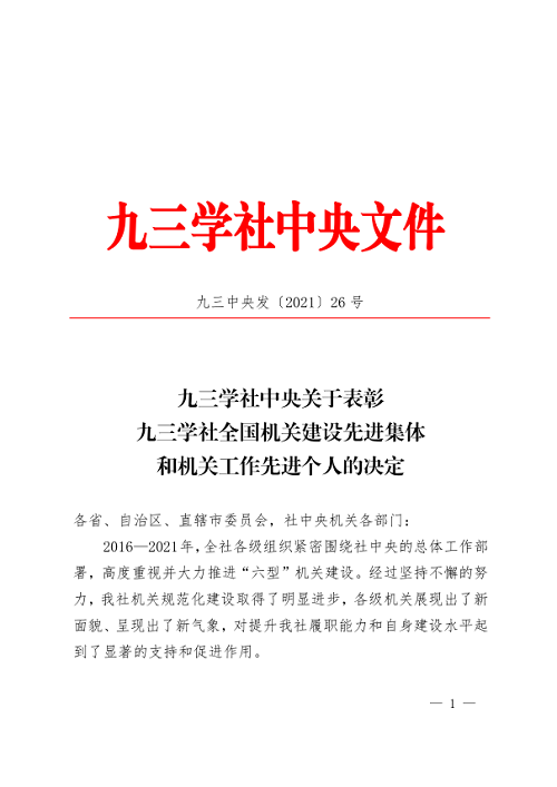 近日,九三學(xué)社中央發(fā)布《關(guān)于表彰九三學(xué)社全國機關(guān)建設(shè)先進(jìn)集體和機關(guān)工作先進(jìn)個人的決定》,九三學(xué)社內(nèi)江市委被表彰為“全國機關(guān)建設(shè)先進(jìn)集體”,是四川省榮獲此殊榮的兩家市級組織之一。