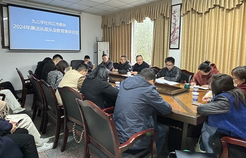 11月21日下午,九三學(xué)社內(nèi)江市委會組織國有企業(yè)中層以上管理人員開展廉潔從政從業(yè)教育集體談話。內(nèi)江市政協(xié)副主席、社內(nèi)江市委會主委段輝國出席會議并講話。社市委會副主委、內(nèi)部監(jiān)督委員會主任林海亮主持會議。