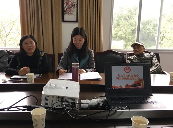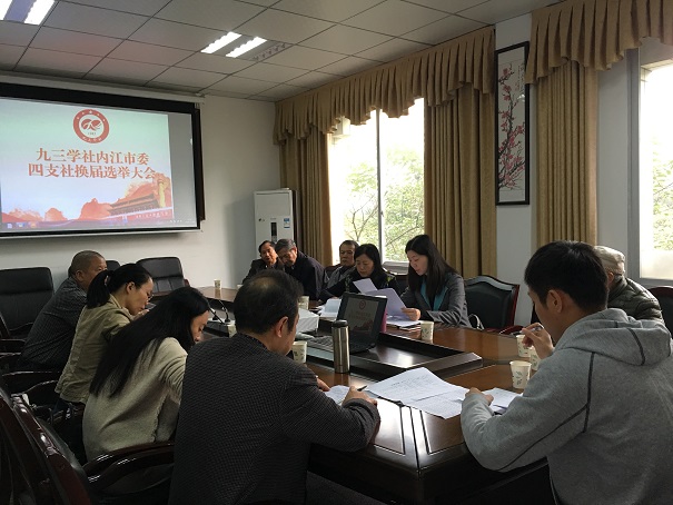 11月4日,九三學社內江市委第四支社換屆選舉大會召開。社市委副主委韓霞、秘書長黎麗琴出席會議,四支社上一屆領導班子成員及社員共11名同志參加會議。黎麗琴主持會議。