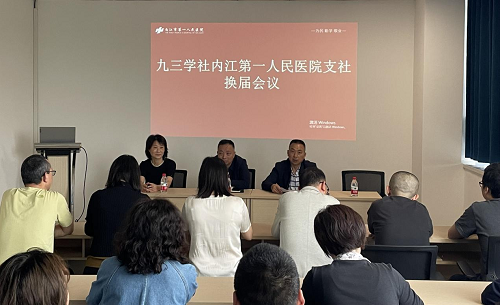 4月22日下午,九三學(xué)社內(nèi)江市第一人民醫(yī)院支社在全科醫(yī)師樓舉行換屆會議。九三學(xué)社內(nèi)江市委專職副主委鄒蘭斌出席并主持會議,市第一人民醫(yī)院黨委副書記陳生文及九三學(xué)社內(nèi)江市第一人民醫(yī)院支社在職社員參加會議。
