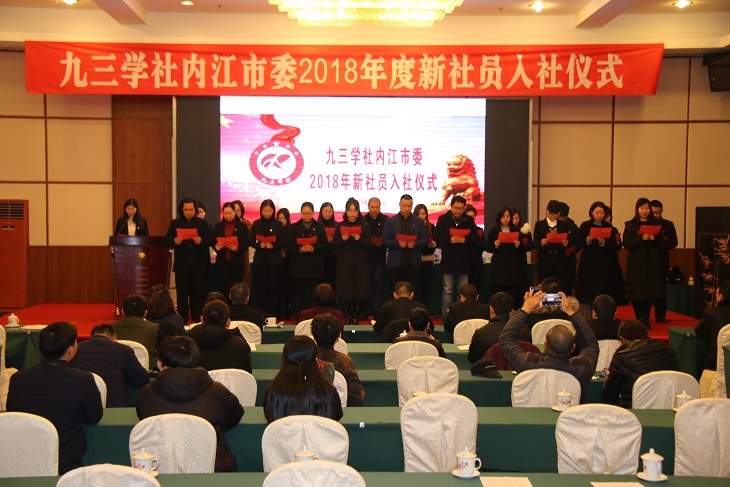 2019年1月25日下午,九三學社內(nèi)江市委舉行了2018年新社員入社儀式。社市委主委段輝國、副主委林海亮、鄒蘭斌、韓霞及秘書長黎麗琴出席了會議。市委統(tǒng)戰(zhàn)部機關黨委書記張仕能應邀出席會議。林海亮主持入社儀式。