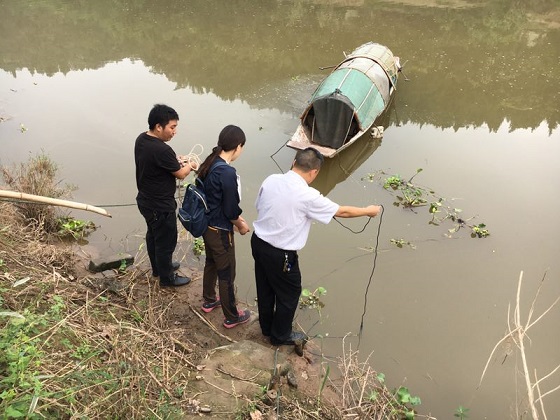 在每一個考察點,大家分工合作用專業(yè)的設備現(xiàn)場測試部分重要指標,采集水質與生物樣品,與當?shù)刈艚徽劻私庠摵佣蔚木幼?、農業(yè)等信息,并沿河岸行走觀察附近河段的環(huán)境狀況,搜集盡可能全面的數(shù)據(jù)和信息。