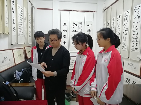 4月1日下午,社員張國慶老師帶領(lǐng)三名熱愛書法的學(xué)生去饒永才書法工作室求知,受到九三學(xué)社社員、中國書法家協(xié)會會員、國家一級書法師饒永才的熱情接待和細(xì)心講解。