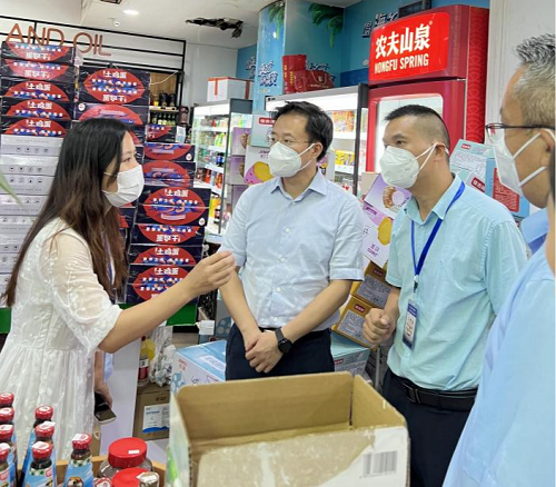 市委常委、常務(wù)副市長何政、副市長畢勝先后蒞臨市中區(qū)鑫喜公司甜城鄉(xiāng)鄰超市實地調(diào)研疫情防控和市場保供工作。唐忠英詳細(xì)匯報了目前超市物品供銷、內(nèi)部疫情防控舉措、員工核酸檢測落實、食品運(yùn)輸管理、物品銷售配送流程、生活必需品儲備等情況。副市長畢勝聽取匯報后高度肯定甜城鄉(xiāng)鄰超市疫情期間物資配送工作,叮囑公司再接再厲,為區(qū)疫情防控作出新貢獻(xiàn)。并指出:做好疫情防控期間的供應(yīng)保障工作是一項重要的政治任務(wù),也是當(dāng)前的頭等大事?!懊状印薄安嘶@子”涉及千家萬戶,要以嚴(yán)而又嚴(yán)、細(xì)而又細(xì)的舉措,切實提高認(rèn)識、壓實責(zé)任,強(qiáng)化對外卡口疫情防線的同時,精心做好生活物資儲備供應(yīng)調(diào)配等工作,有力保障市場供應(yīng)。